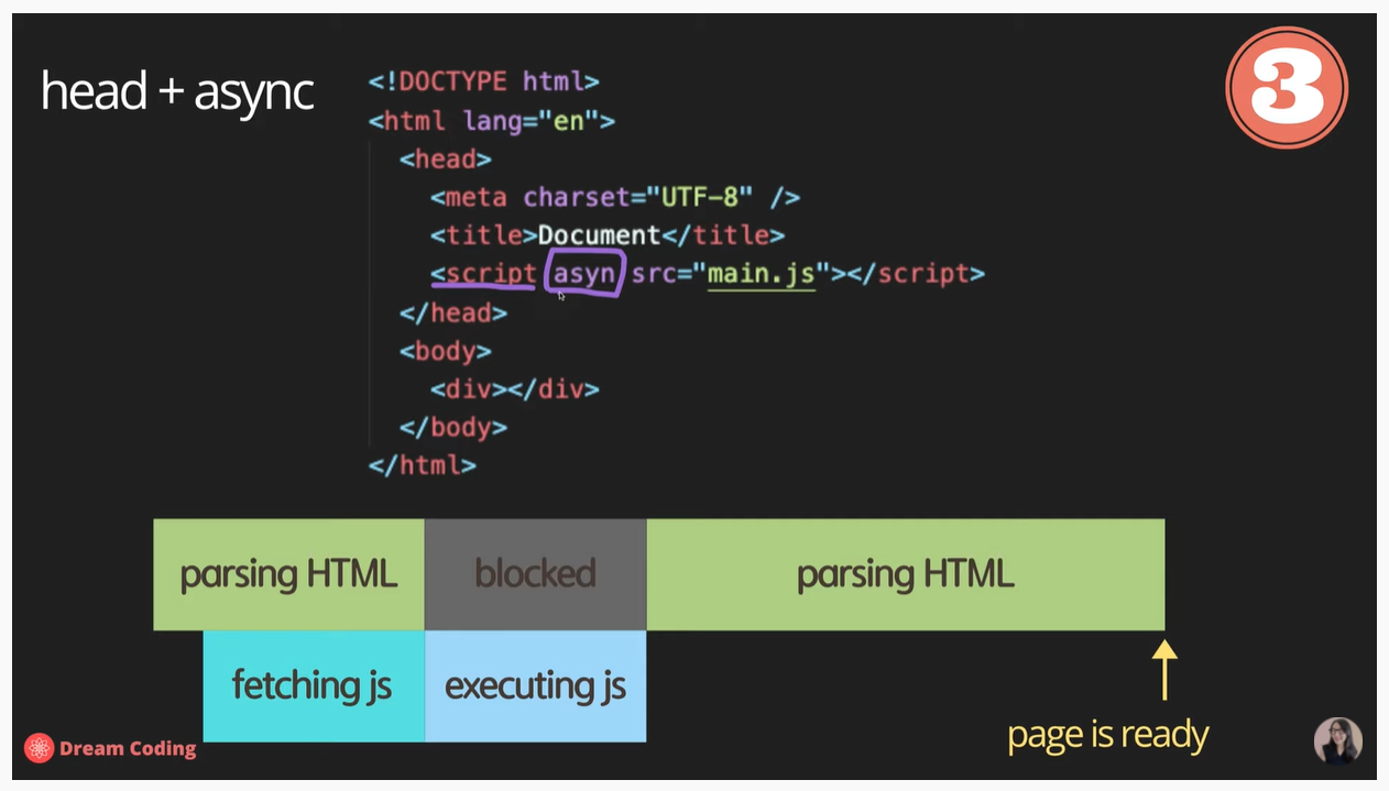 -언제든지 js 실행을 위해 html파싱이 멈출수있으므로 사용자가 페이지로드하는데 시간이 여전히 소요된다는 단점